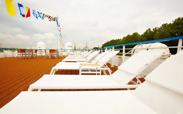 На верхней солнечной палубе расположены места для принятия солнечных ванн.