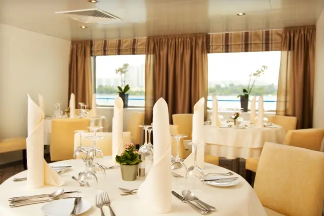 В ресторане подается трехразовое питание для гостей теплохода. Уютный интерьер и изумительный вид сделают каждый прием пищи незабываемым.